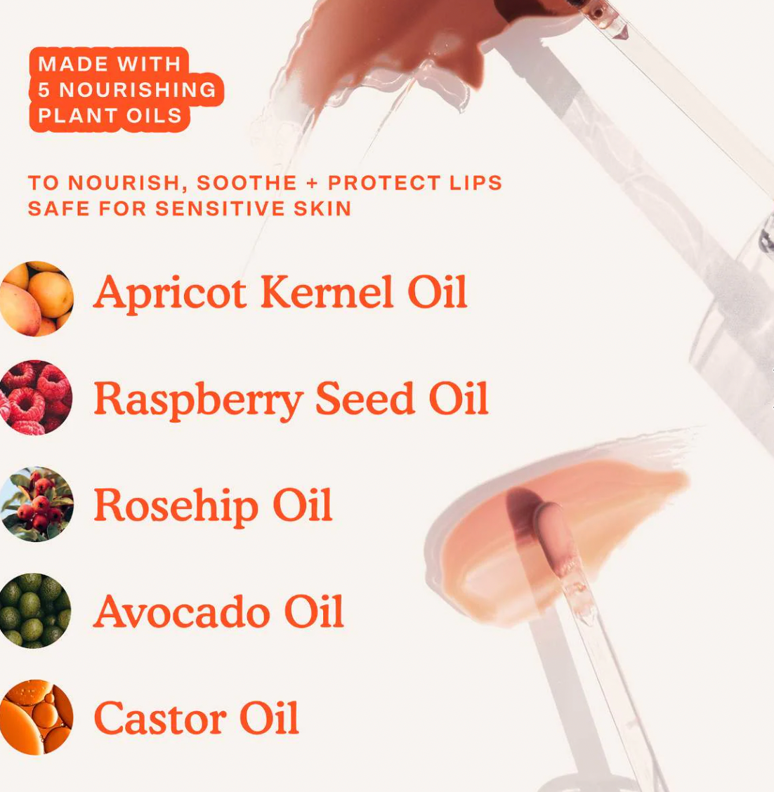 アプリコットカーネルオイル - 栄養豊富な特性で知られ、このオイルは唇を落ち着かせ、保湿し、滑らかで柔軟な印象を促進します。